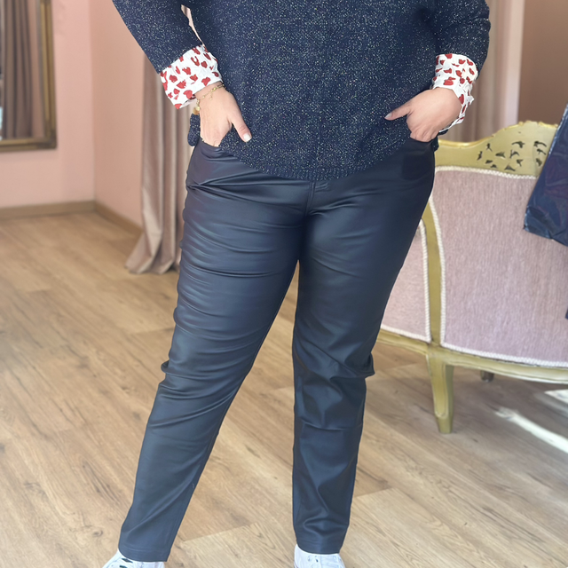 Tendance et confortable, ce pantalon huilé est un incontournable pour un look moderne et élégant. Sa finition légèrement brillante lui apporte une touche chic, tout en restant facile à associer avec une blouse, un pull ou une veste.