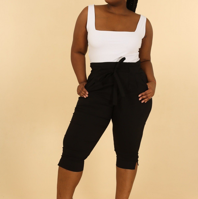 🌸 Pantacourt stretch ceinturé – Style & confort en grande taille
