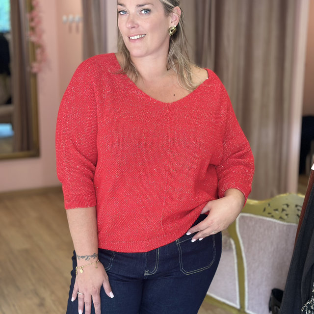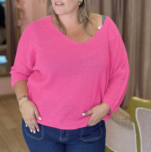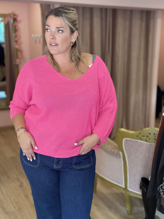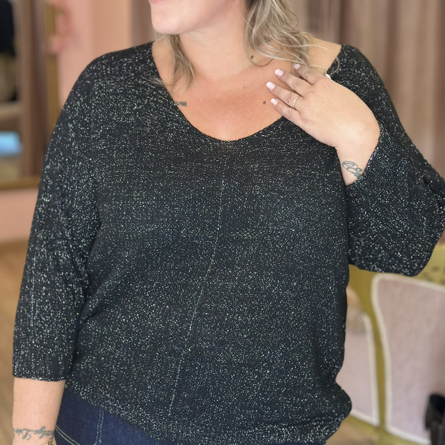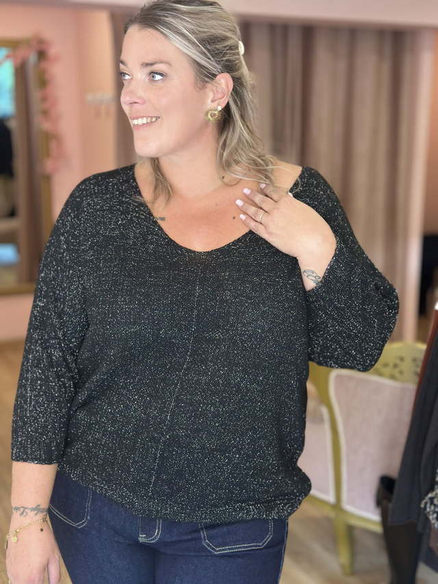 🌸 Pull brillant fil argenté – Manches 3/4