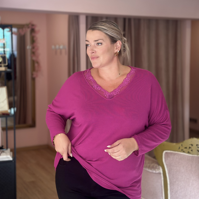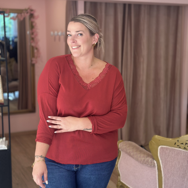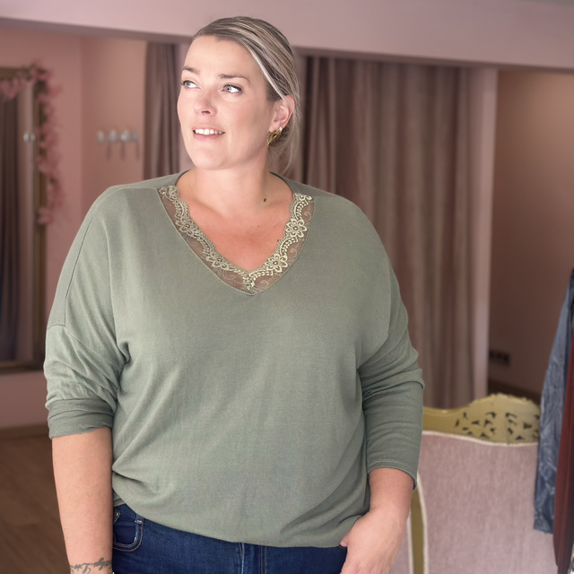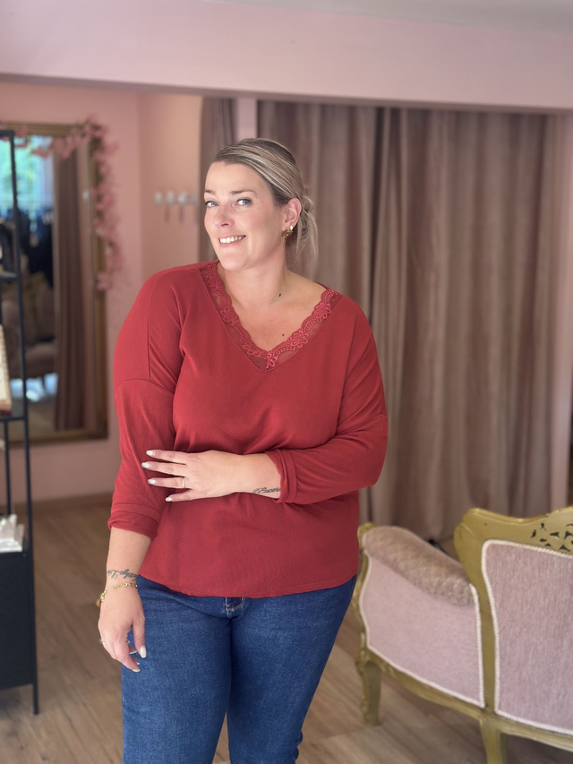 🌸 Pull fin encolure dentelle – Taille unique (44 au 54)