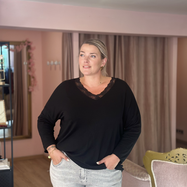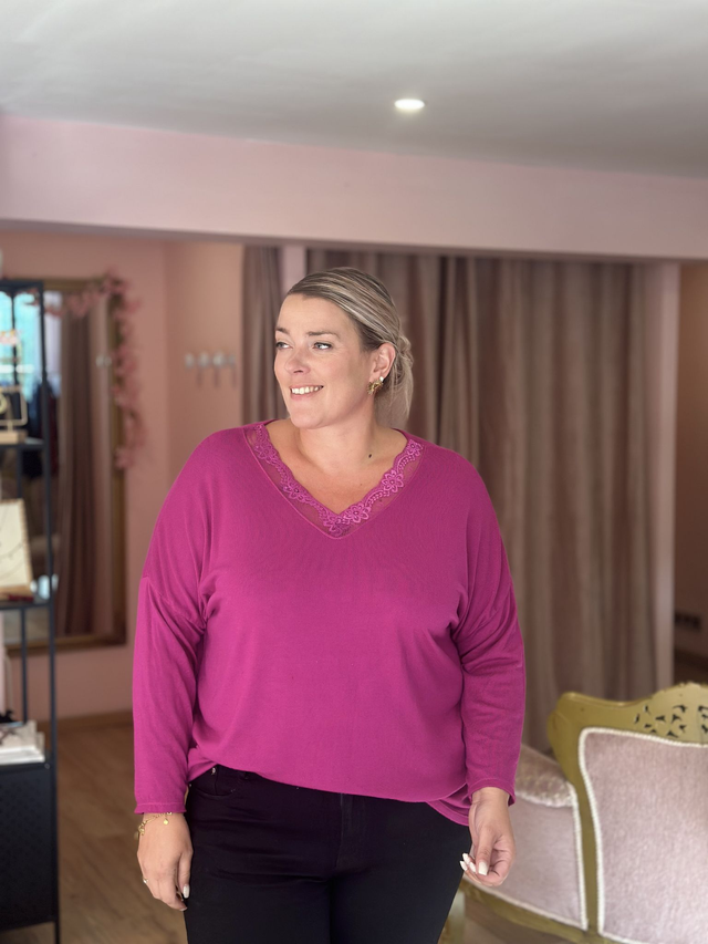 251-Pull fin encolure dentelle Taille unique du 42 au 54