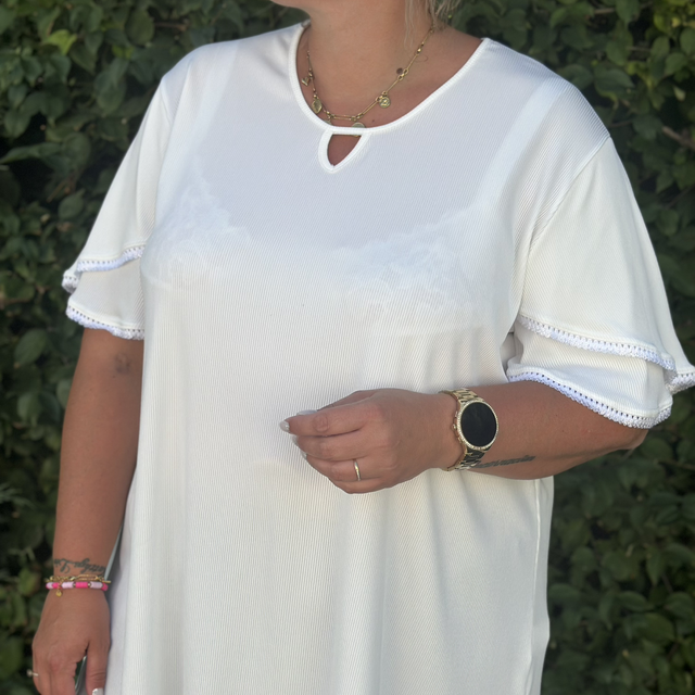 Les manches courtes sont subtilement travaillées avec des détails élégants apportant une touche féminine et tendance à cette pièce du quotidien. Facile à associer avec un legging, un jean ou un pantalon fluide, elle deviendra vite un basique de votre dressing.