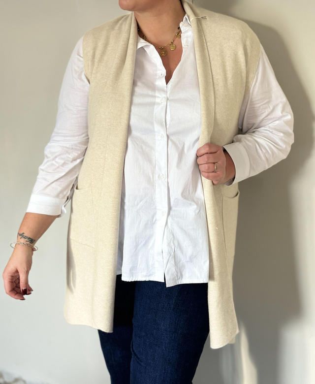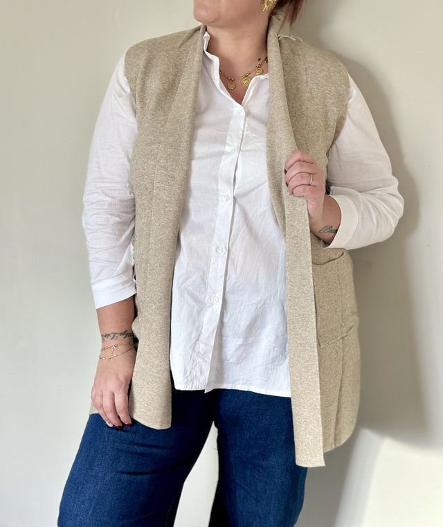 ✨ Chic, doux et élégant, ce gilet long sans manches est l’allié parfait pour compléter toutes vos tenues. Sa matière douce avec une touche de cachemire offre un confort irrésistible, tout en apportant une silhouette élancée et moderne.