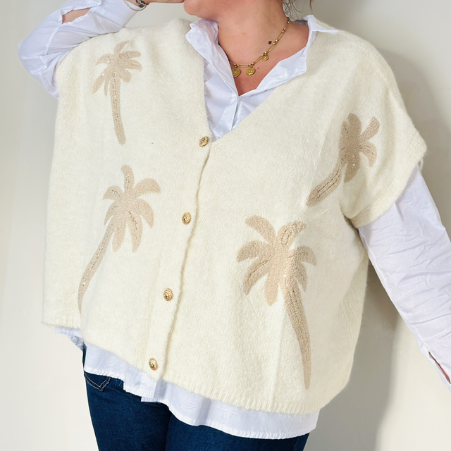 🌸✨ Pull Sans Manche Motif Palmier – Made in Italy ✨🌸